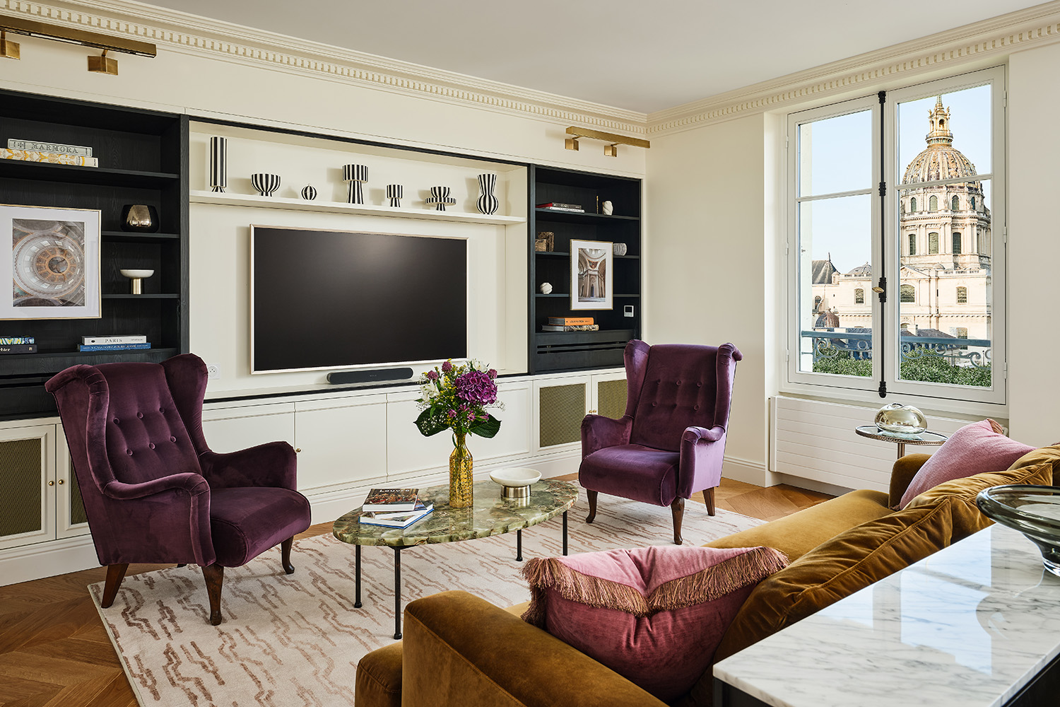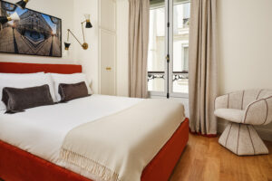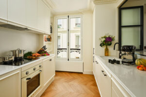 Nestled in the Rive Gauche, this spacious three-bedroom apartment is in the heart of the 7th arrondissement of Paris, one of the city’s most iconic and luxurious neighborhoods. The 7th floor residence features a living room overlooking the Boulevard de la Tour Maubourg and the Les Invalides dome and gardens, full kitchen, and three bedrooms – all beautifully appointed with chic interior design and epic views.