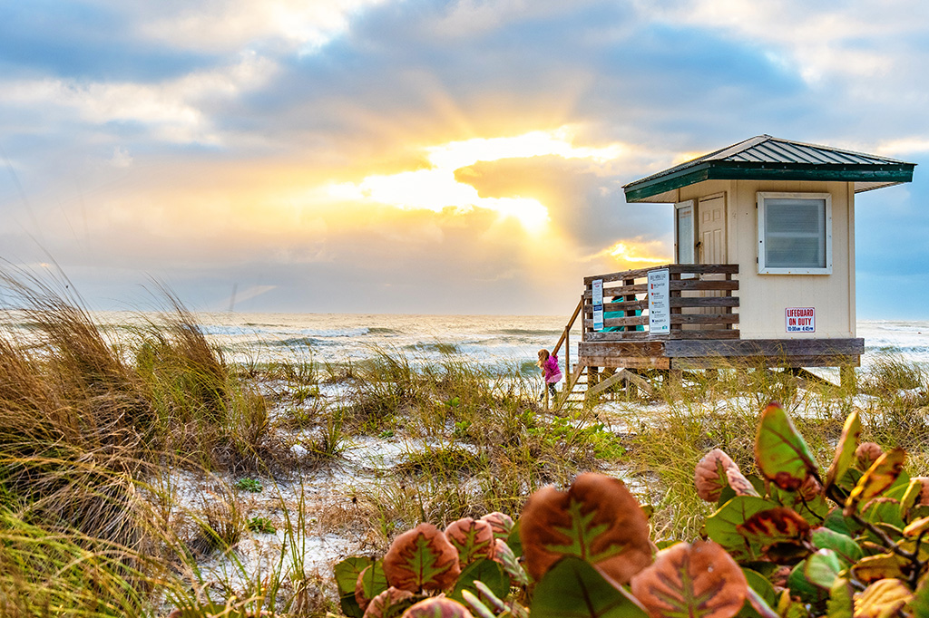 Lovely Lido Key Beach is known for its white, powder-soft sand, turquoise water, and family-friendly vibe. The waves are calm, the water is shallow, and the sandy shore is wide and relatively uncrowded, making it a great place to spend the day hunting for shells and shark’s teeth, building sandcastles, or playing in the water.